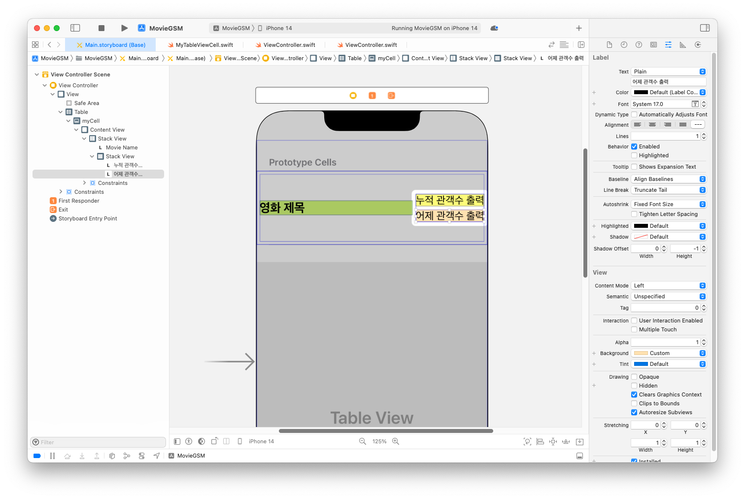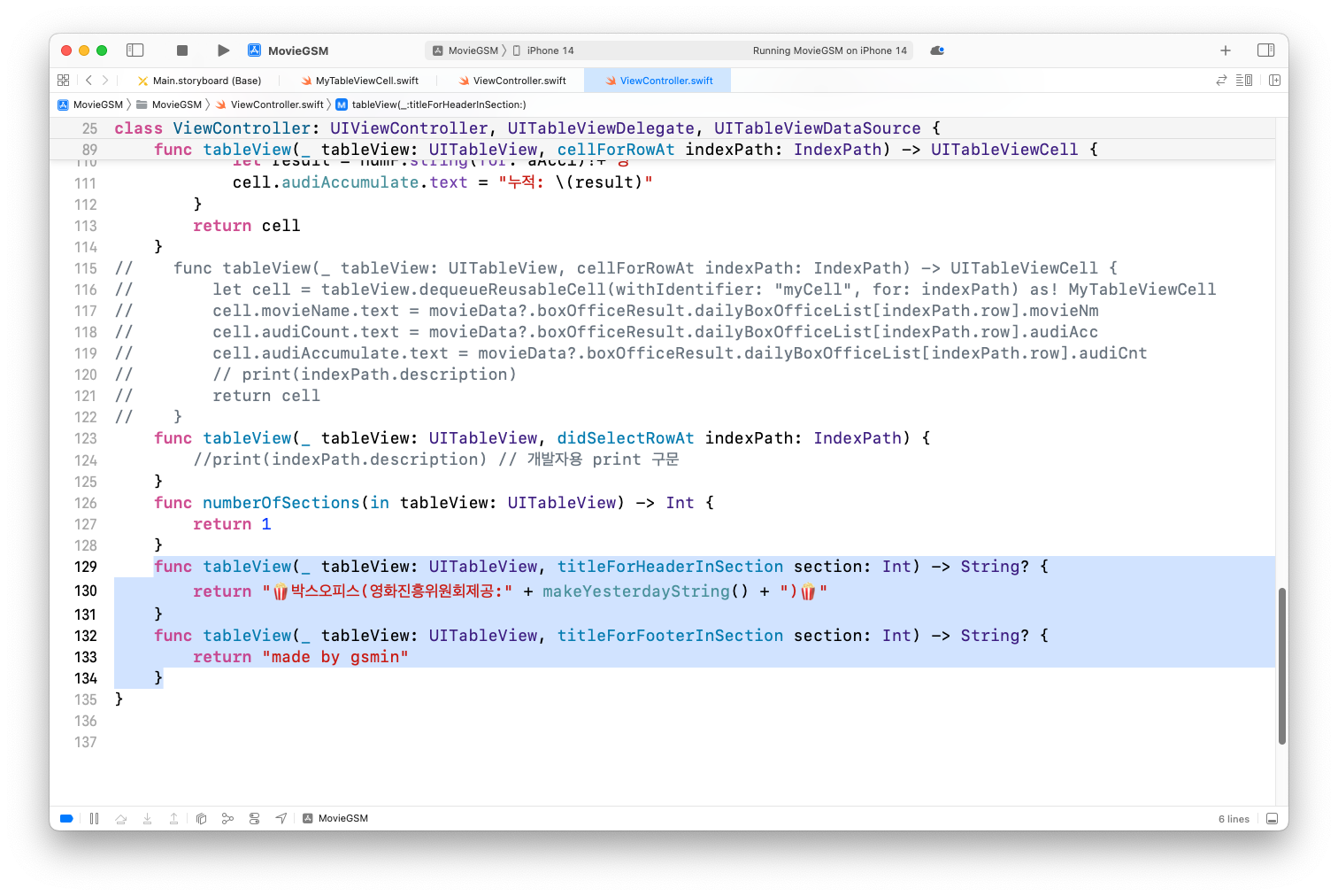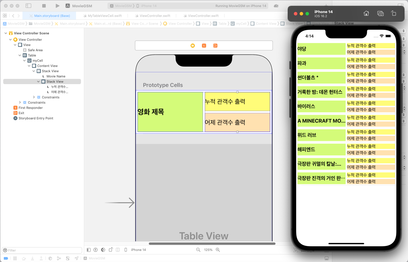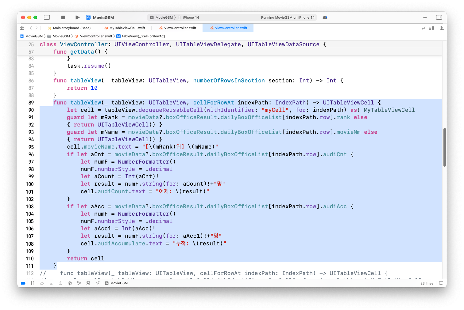 tableView(_: cellForRowAt:) 함수 내용을 다음과 같이 변경
