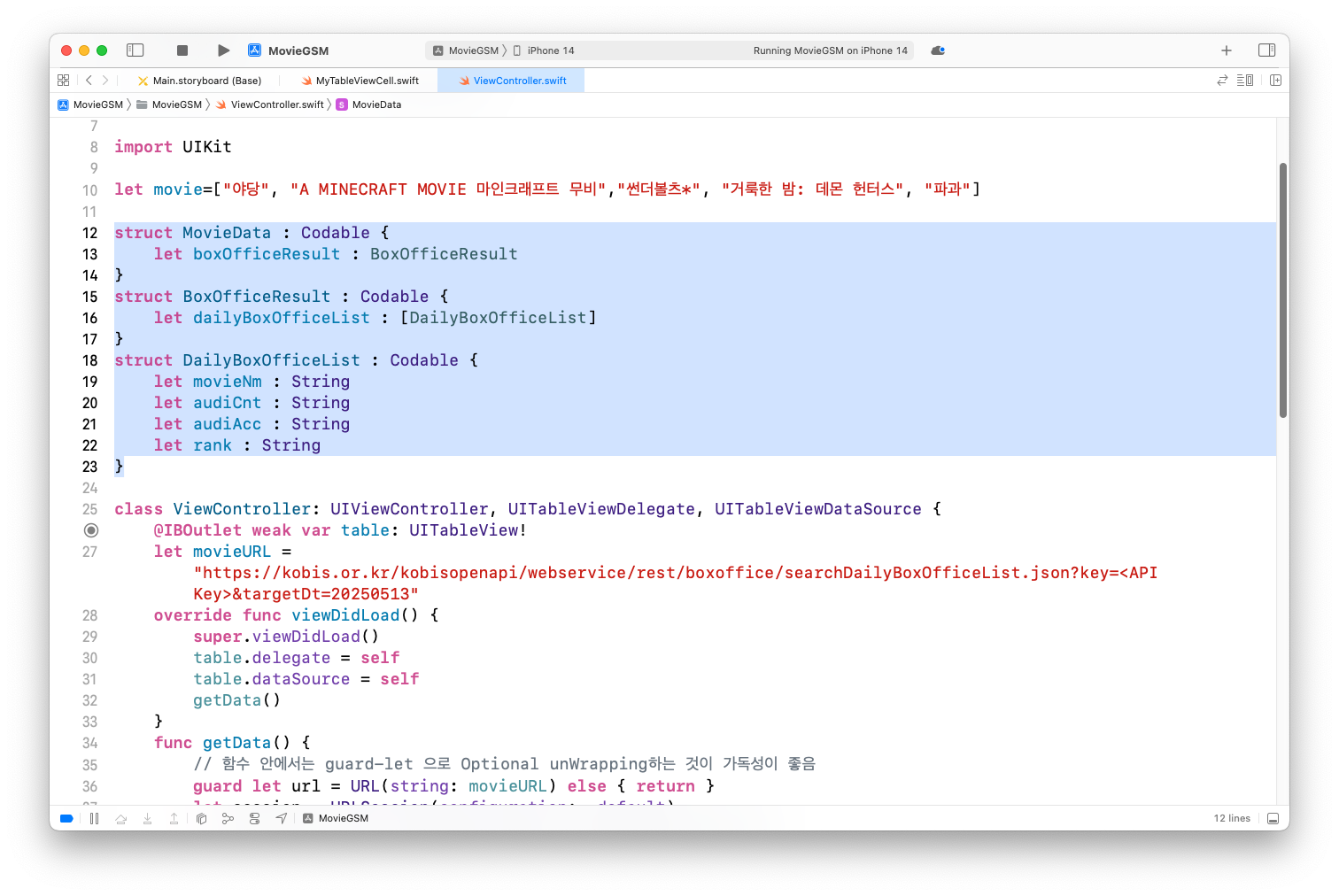 무비 데이터를 파싱하기 위해 JSON 내용을 기반으로 구조체 정의