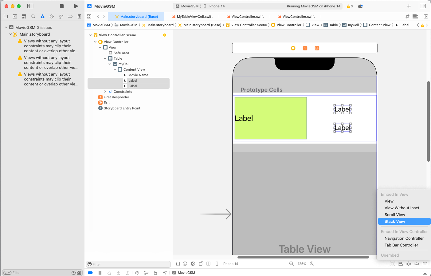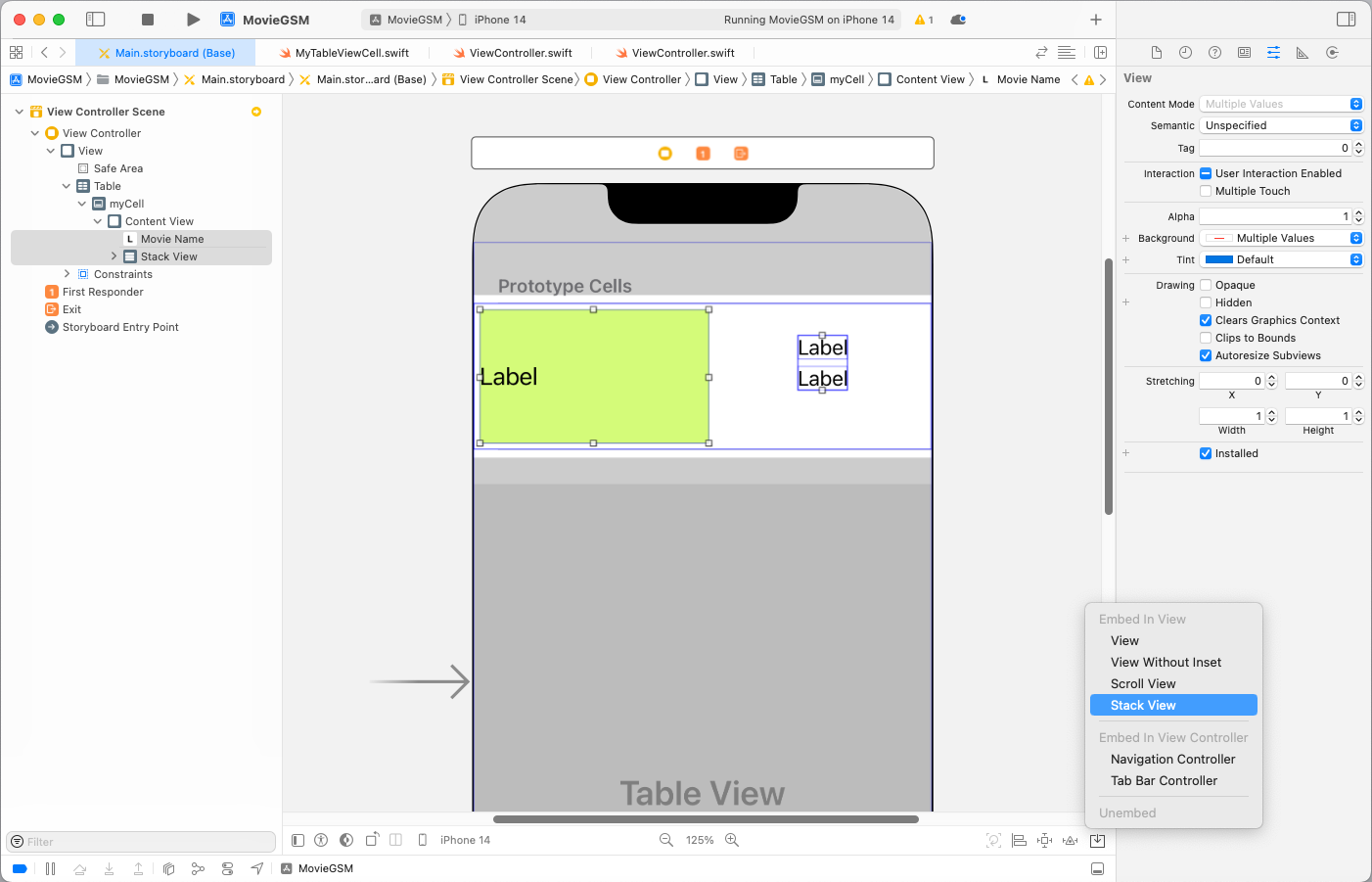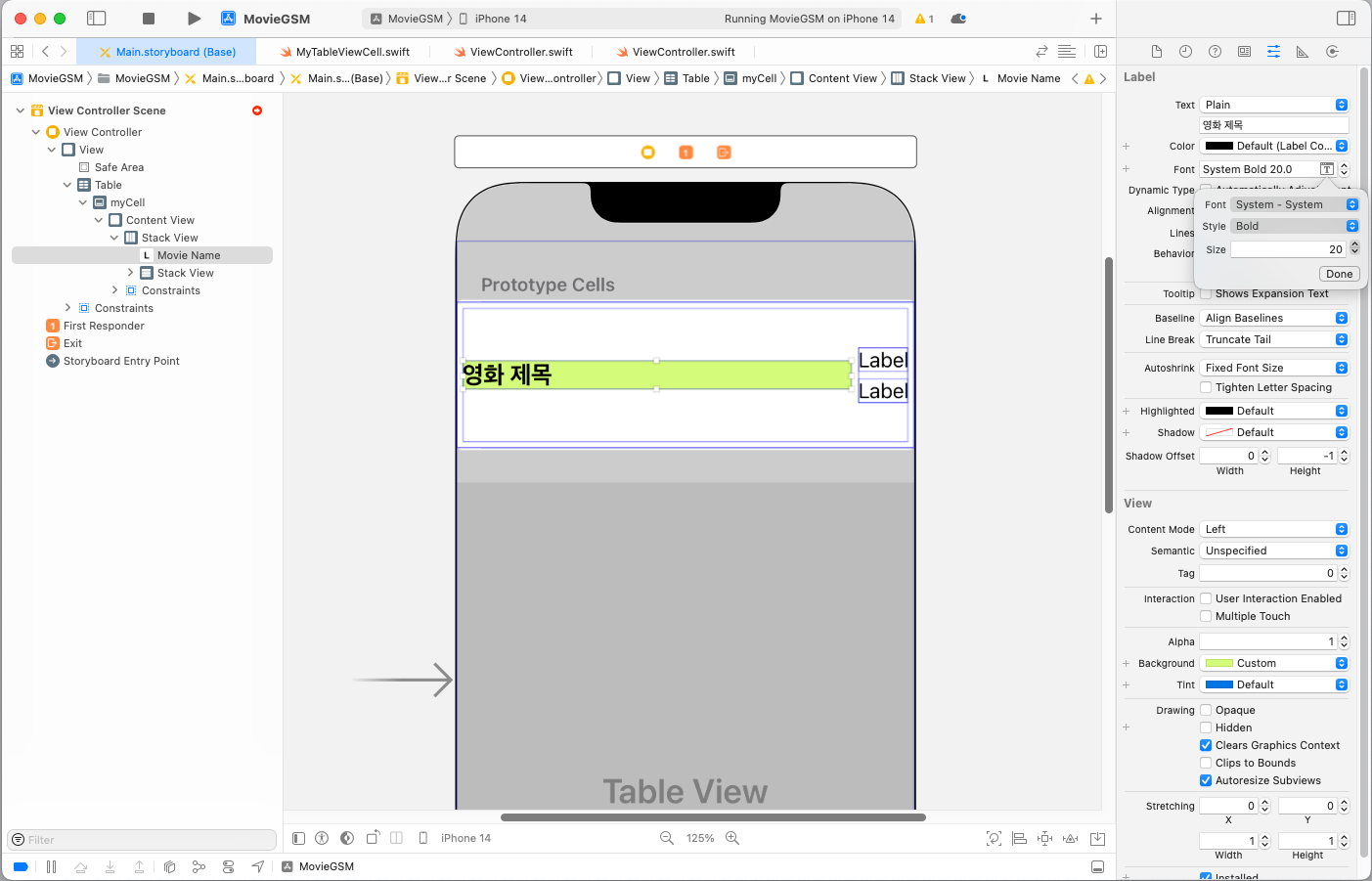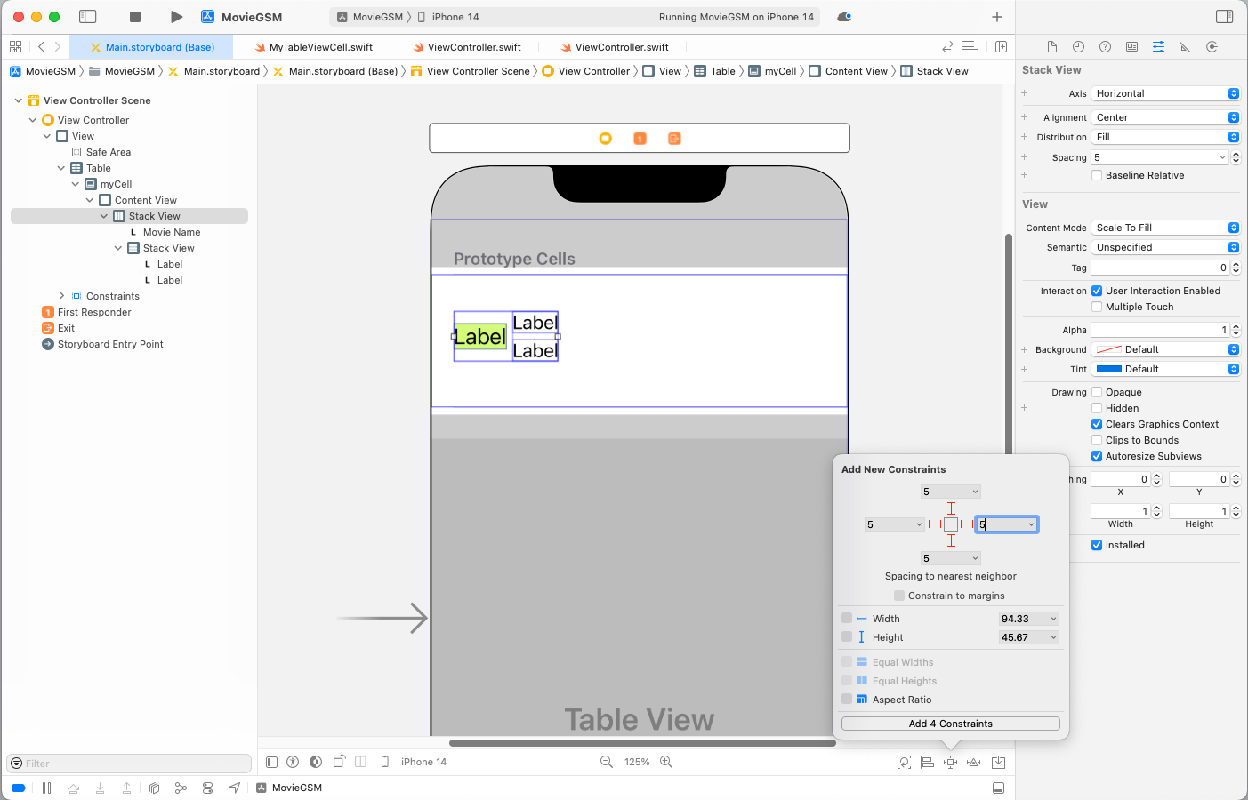 합쳐진 Stack View와 또다른 Label 선택 후 Stack View에 넣기