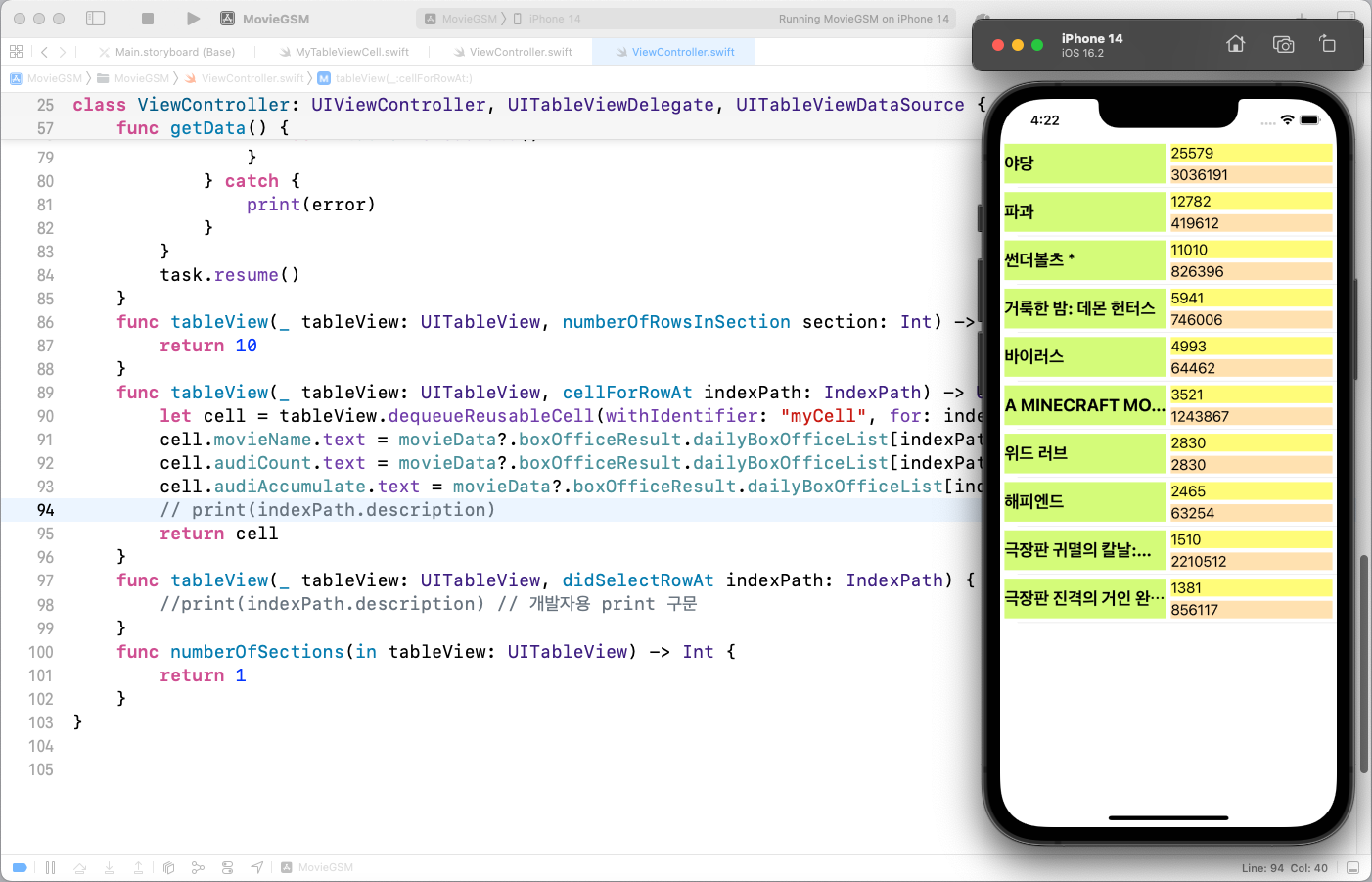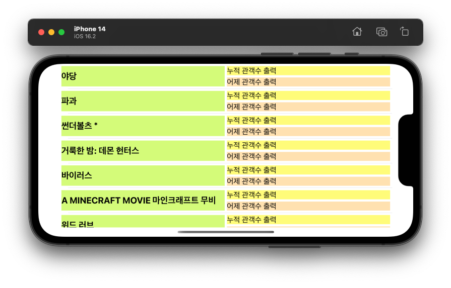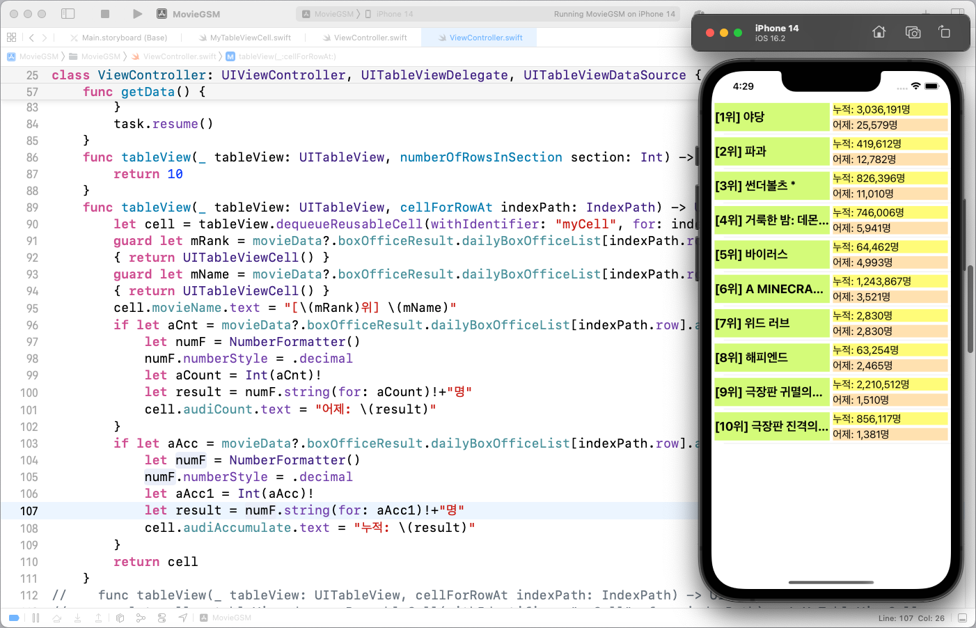 - 받아온 영화 순위를 앱에 보여주는 기능을 구현했어요.