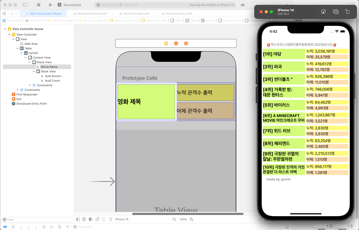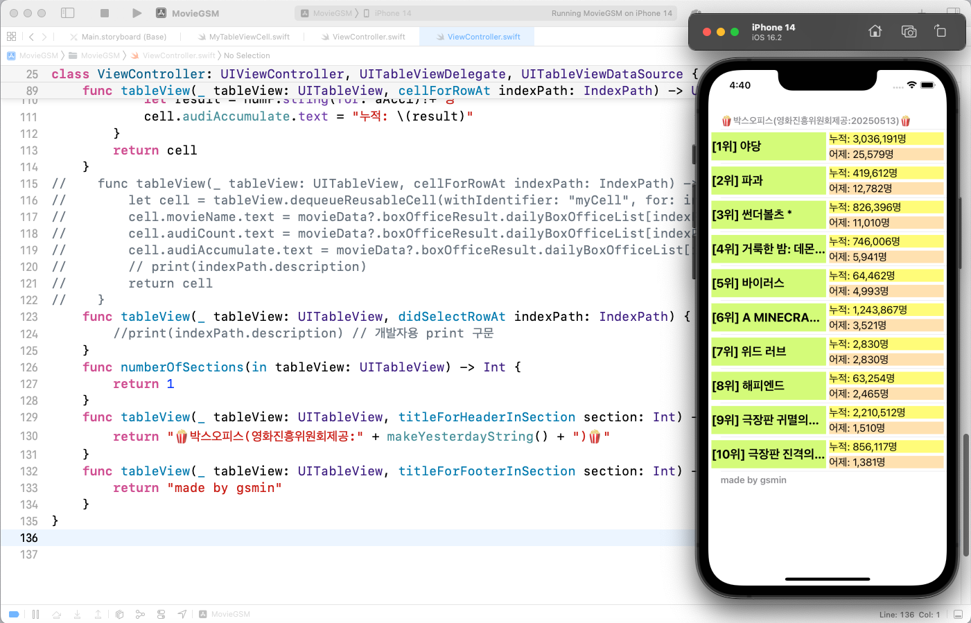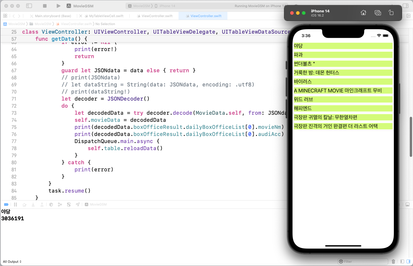 - 받아온 영화 순위를 앱에 보여주는 기능을 구현했어요.