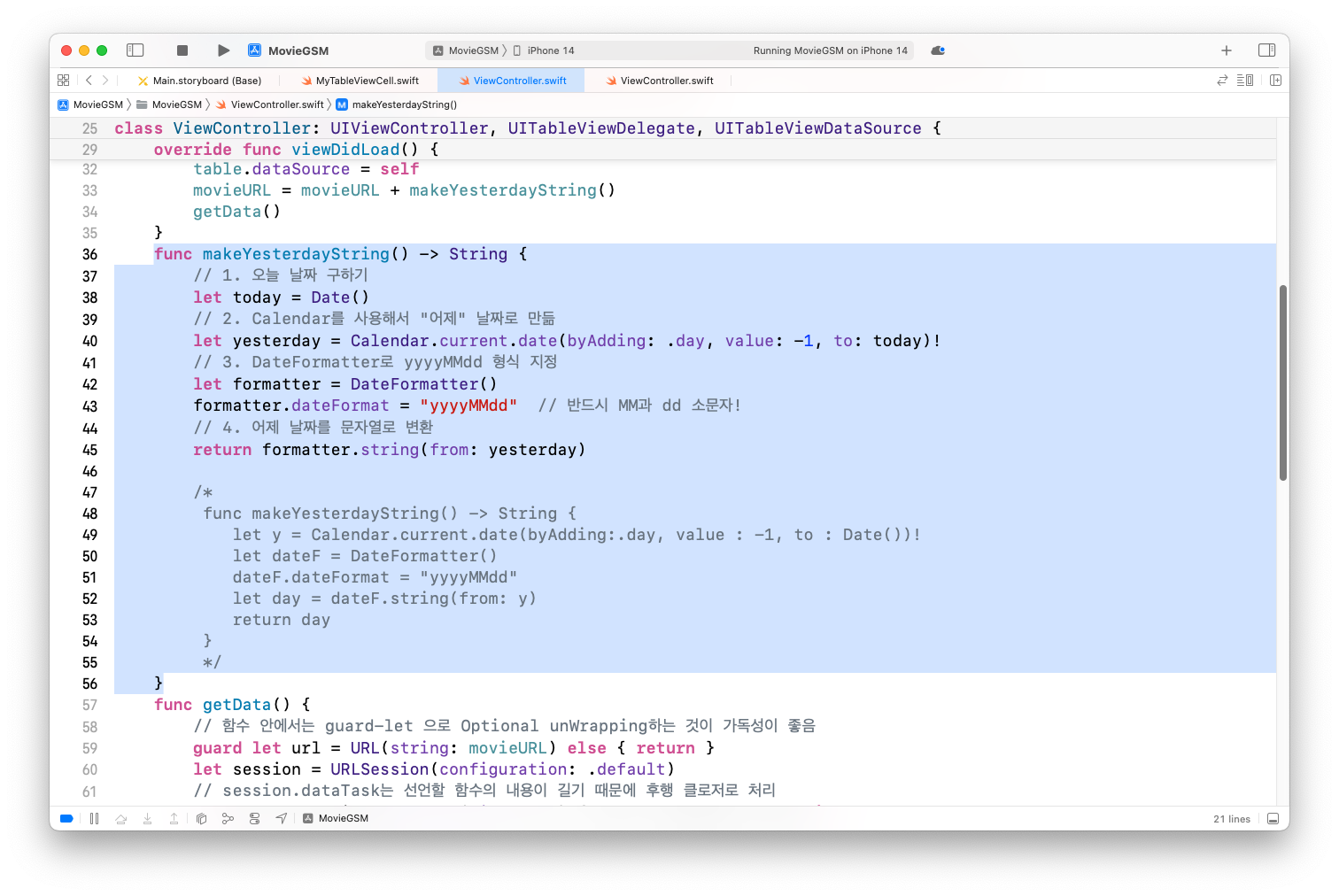 movieURL을 var로 변경하고 뒷부분 날짜 지우기