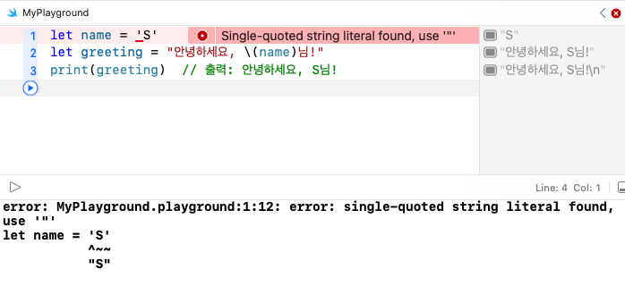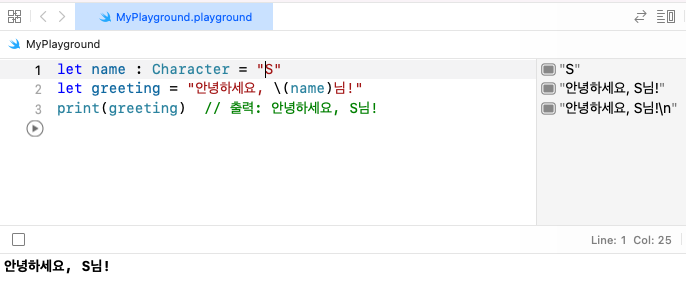 print(greeting) // 출력: 안녕하세요, Swift님!