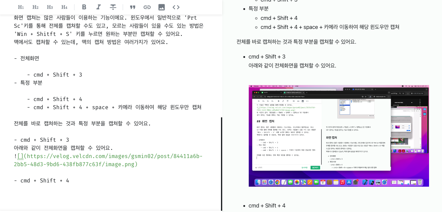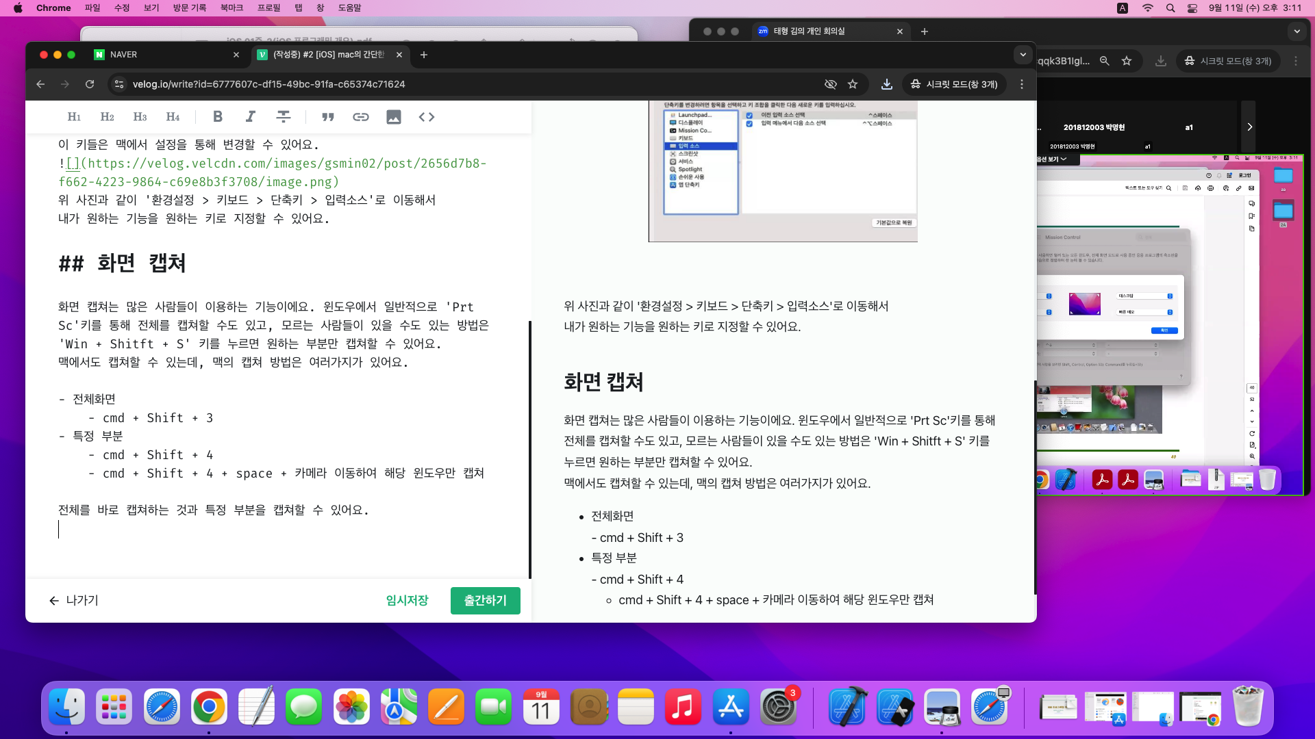 맥에서도 캡쳐할 수 있는데, 맥의 캡쳐 방법은 여러가지가 있어요.