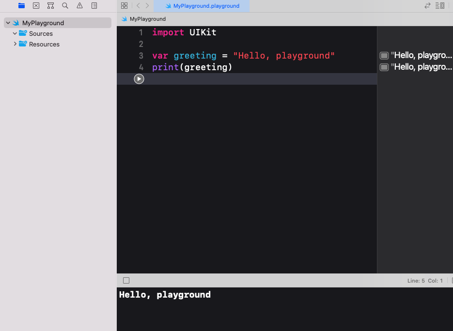 이제 공식 문서를 통해 도움을 받을 수 있으니 Xcode의 PlayGround를 통해 여러가지 기능을 실험해보고 익힐 수 있어요!