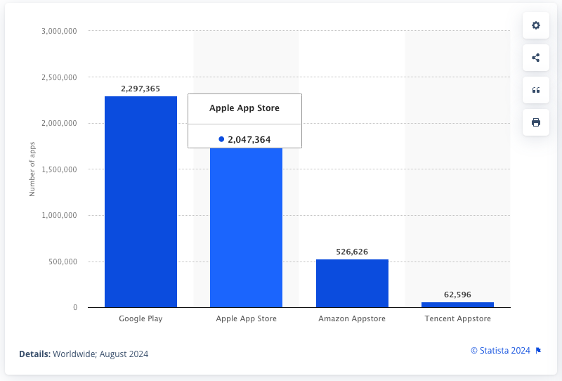 2024년 8월 기준 주요 앱스토어에서 사용 가능한 앱 수에요.