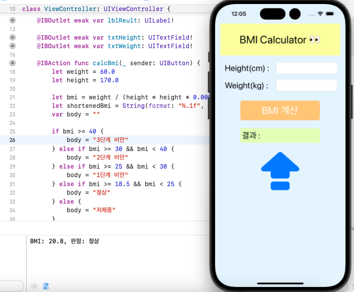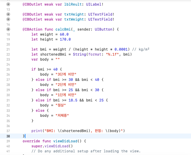 lblReult.text = "BMI: \(shortenedBmi), 판정: \(body)"