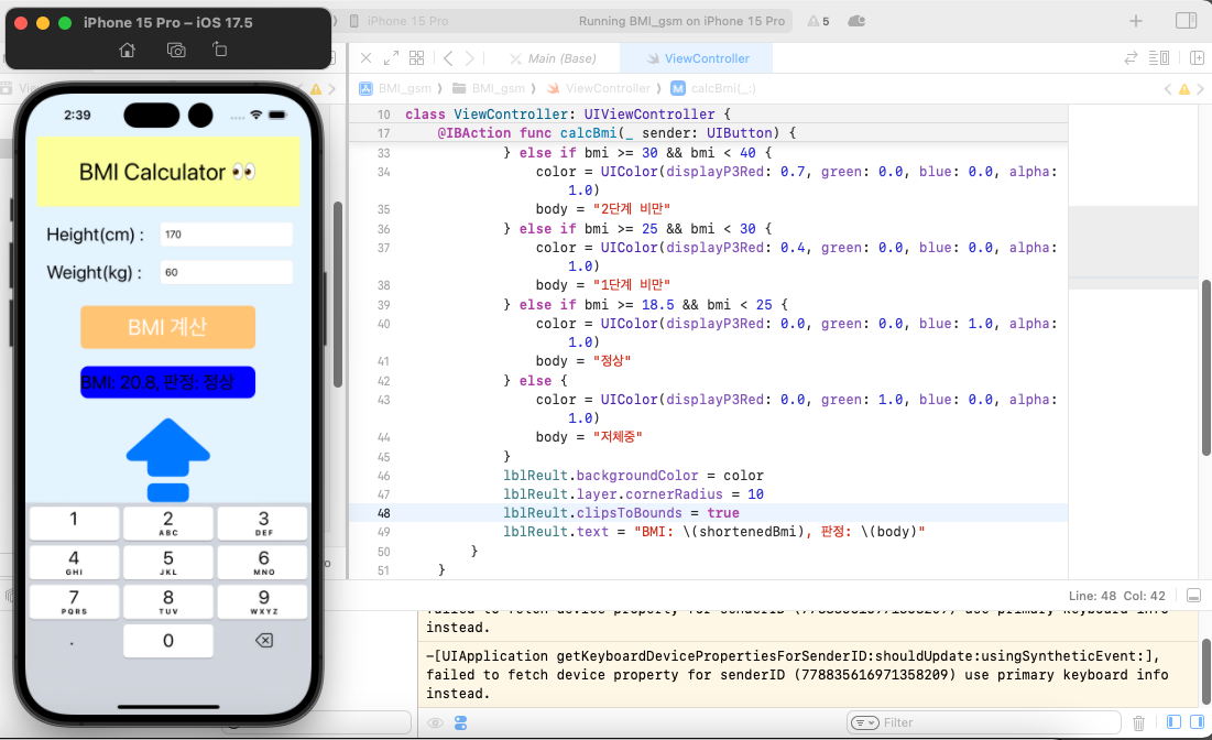 print("BMI: \(shortenedBmi), 판정: \(body)")