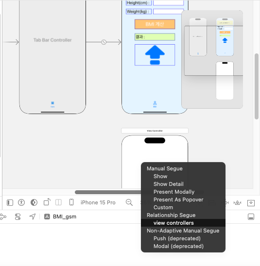드래그 시 나타나는 화면에서 view controllers