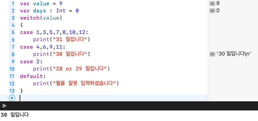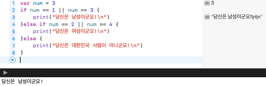 번외로 Swift에서 제일 많이 사용하는 제어문은 다음과 같아요.