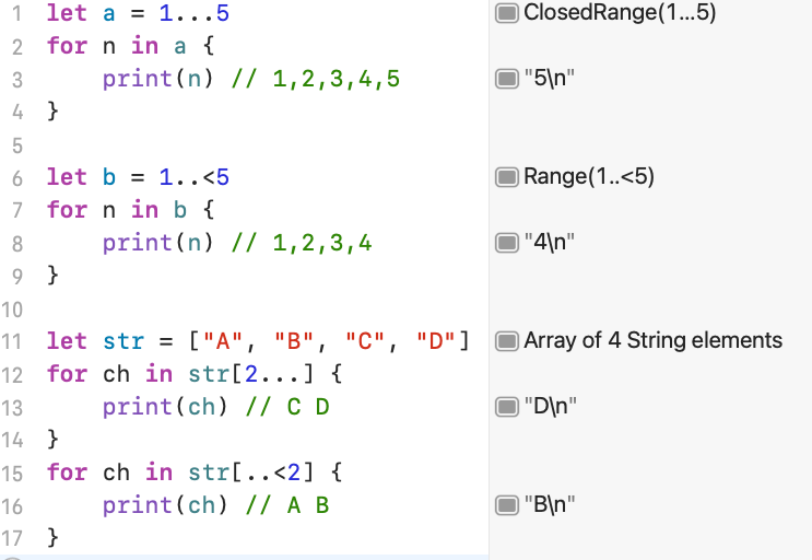 그러나 Swift에서는 for문이 조금 다른 방식으로 선언해요.