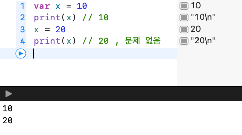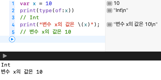 Swift에서 변수를 선언하는 방법과 해당 변수의 자료형을 확인하는 방법 및 print