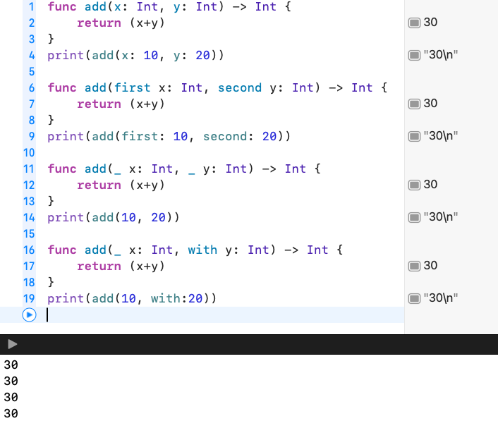 Swift의 기초 문법을 활용하여 함수를 정의해볼 거에요.