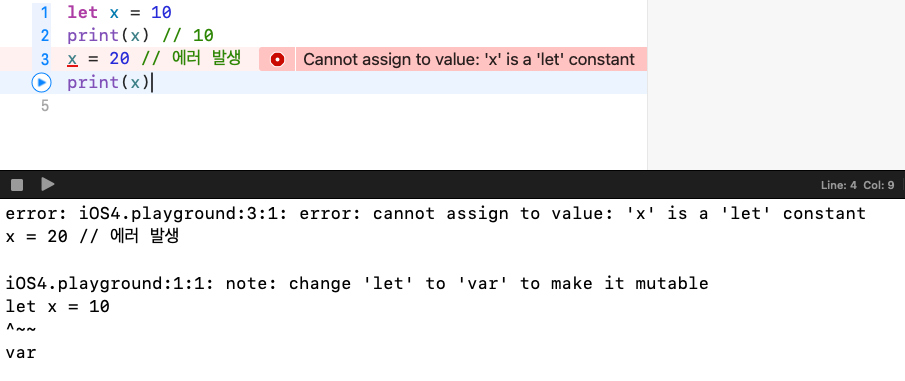 잘못된 사용을 방지하기 위해 Swift에서는 다음과 같은 경우에 에러를 표시해요!