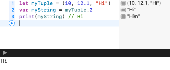 let myTuple = (count: 10, length: 12.1, message: "Hi")
