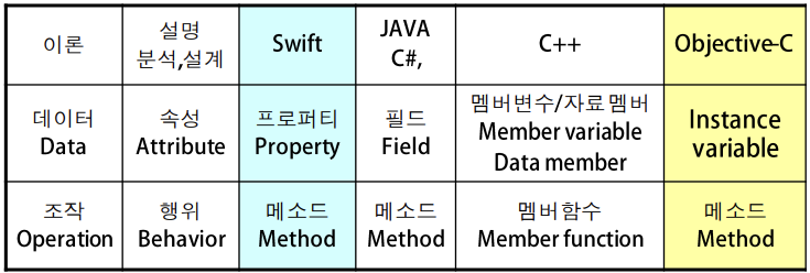 자동차라는 클래스에서 가지는 요소인 '문', '핸들', '바퀴' 등을 Swift