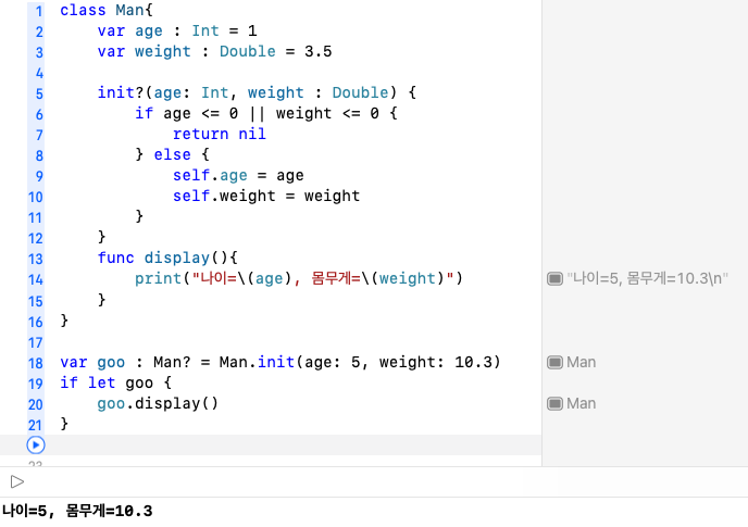 var goo : Man? = Man.init(age: 5, weight: 10.3)