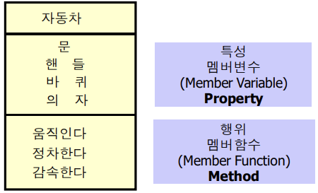 자동차를 클래스에 비교해서 쉽게 설명하면 다음과 같이 나타낼 수 있어요.