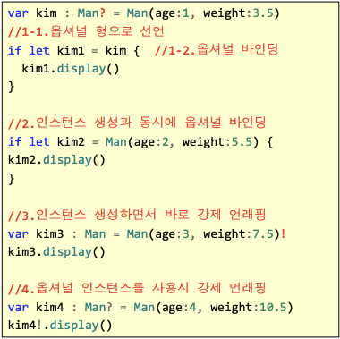 // 4. 옵셔널 인스턴스를 사용시 강제 언래핑