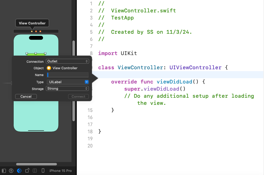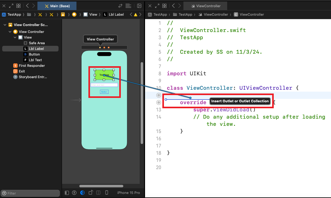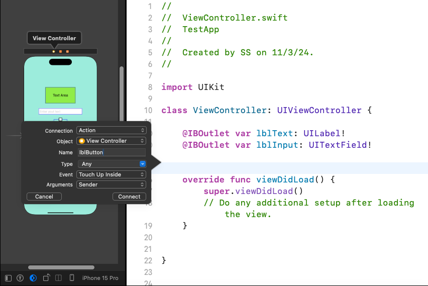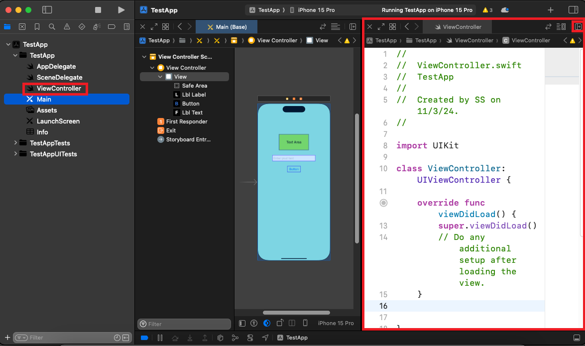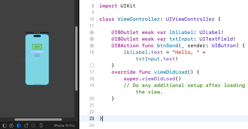 이제 배치된 요소들을 활용해서 실제로 앱이 동작할 수 있도록 설정할게요.