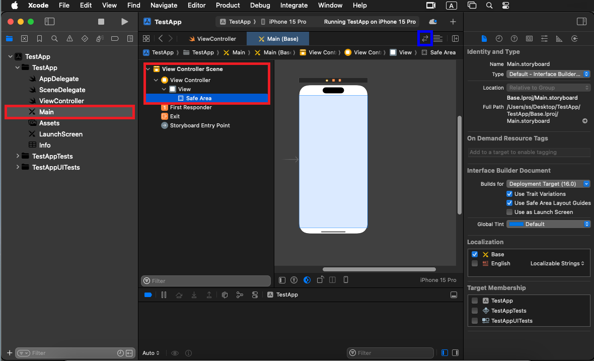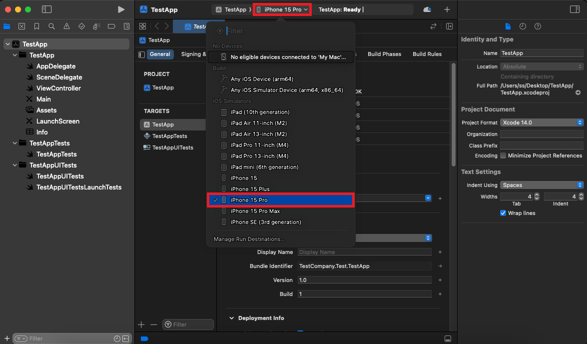 아래 사진을 따라 실행 환경을 iPhone 15 Pro