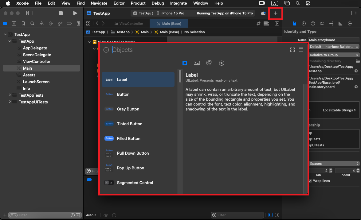 우측 상단에 있는 버튼을 클릭한 후, 화면 좌측의 View Controller