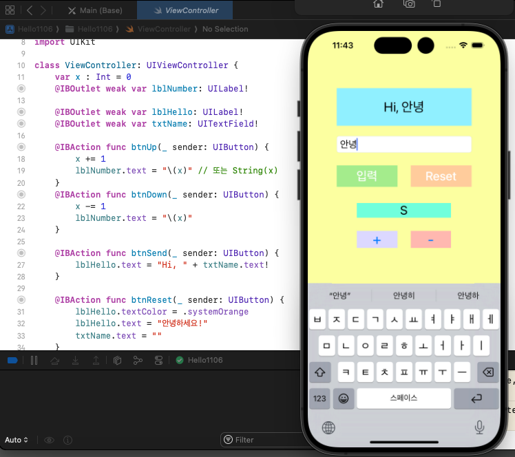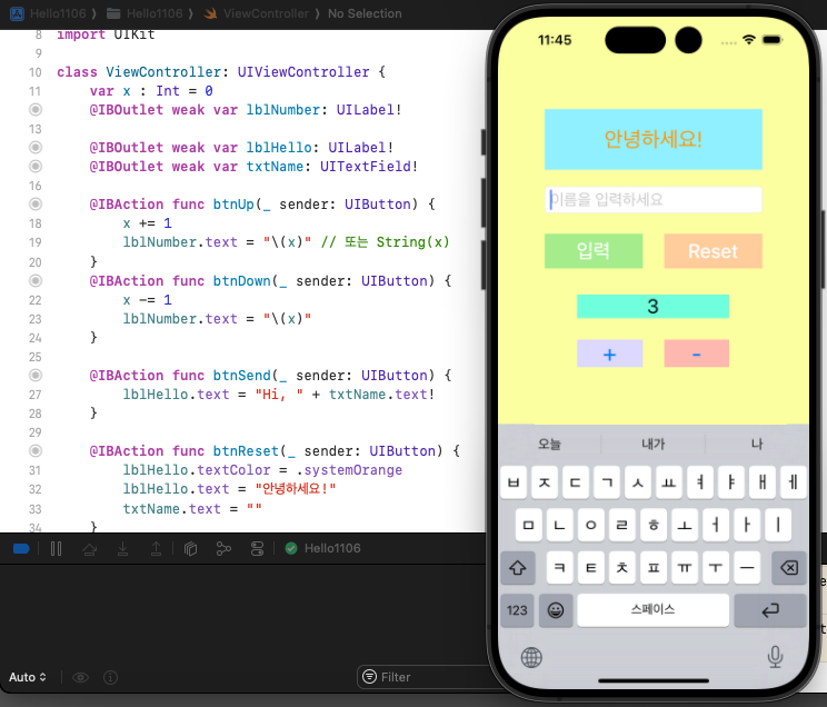 또한, 다양한 기능을 알기 위해 증가, 감소 버튼을 만들어서 같이 적용해볼게요.