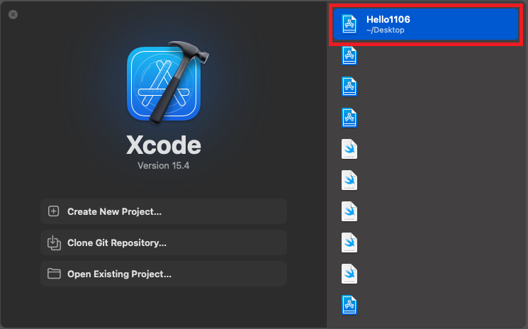 실행 후 가져오기가장 최근에 실행했던 프로젝트라면 Xcode