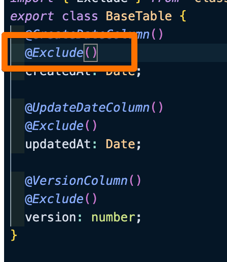 @Exclude 데코레이션 통해서 프론트엔드로 해당 컬럼은 보내지 않는다.