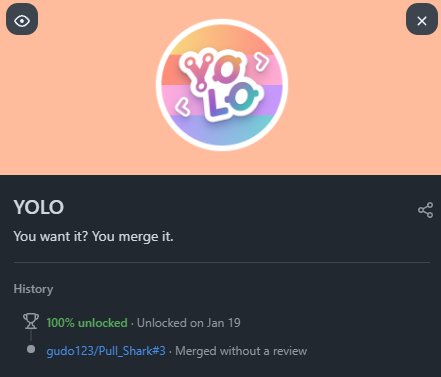 YOLO는 Pull Shark 얻었을때와 똑같은데