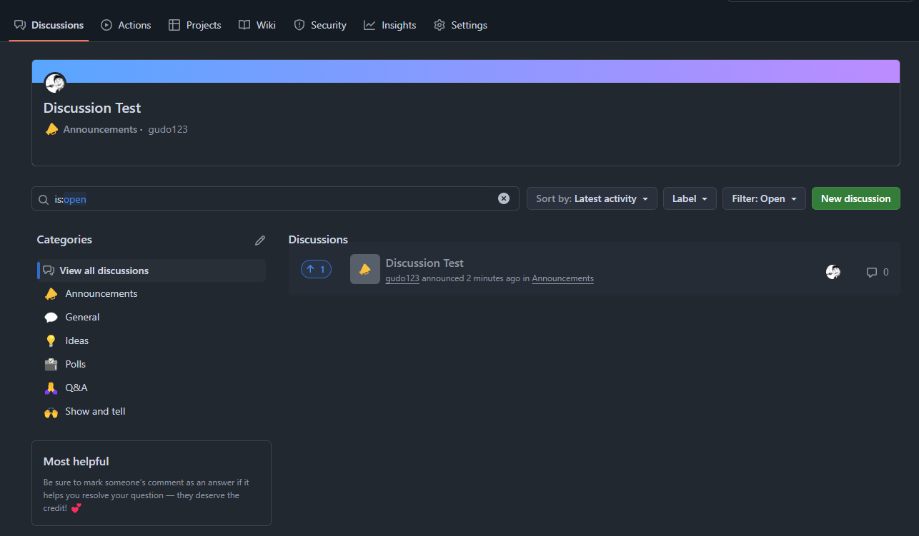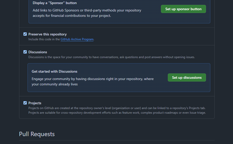 밑으로 내리다보면 Discussions에 관한 설정이 있다.
