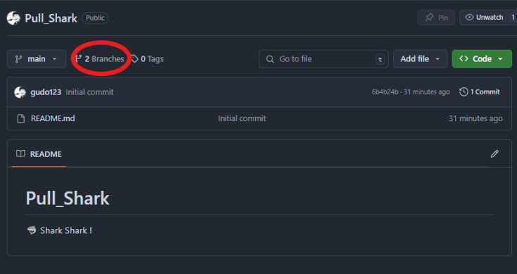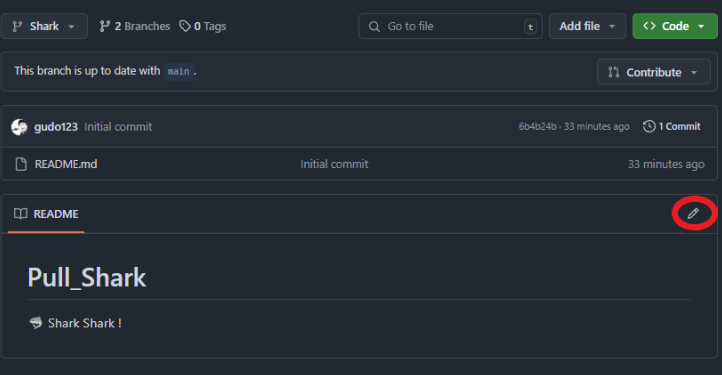 를 수정하고 커밋한 브랜치는 Shark