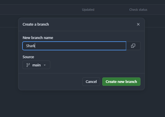 를 해야 하기 때문에 오른쪽에 있는 New branch를 눌러 새로운 branch를 생성해보자