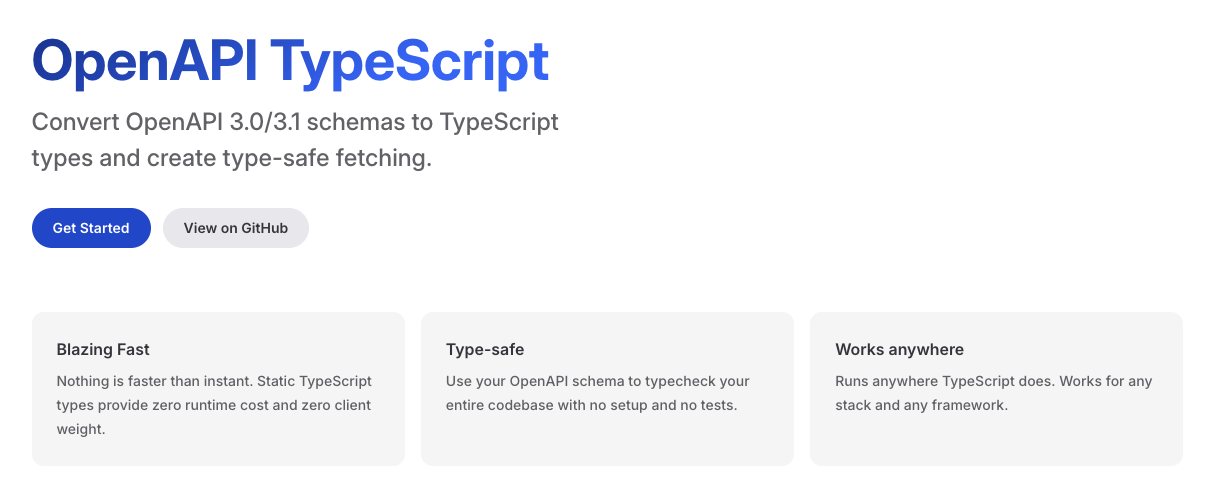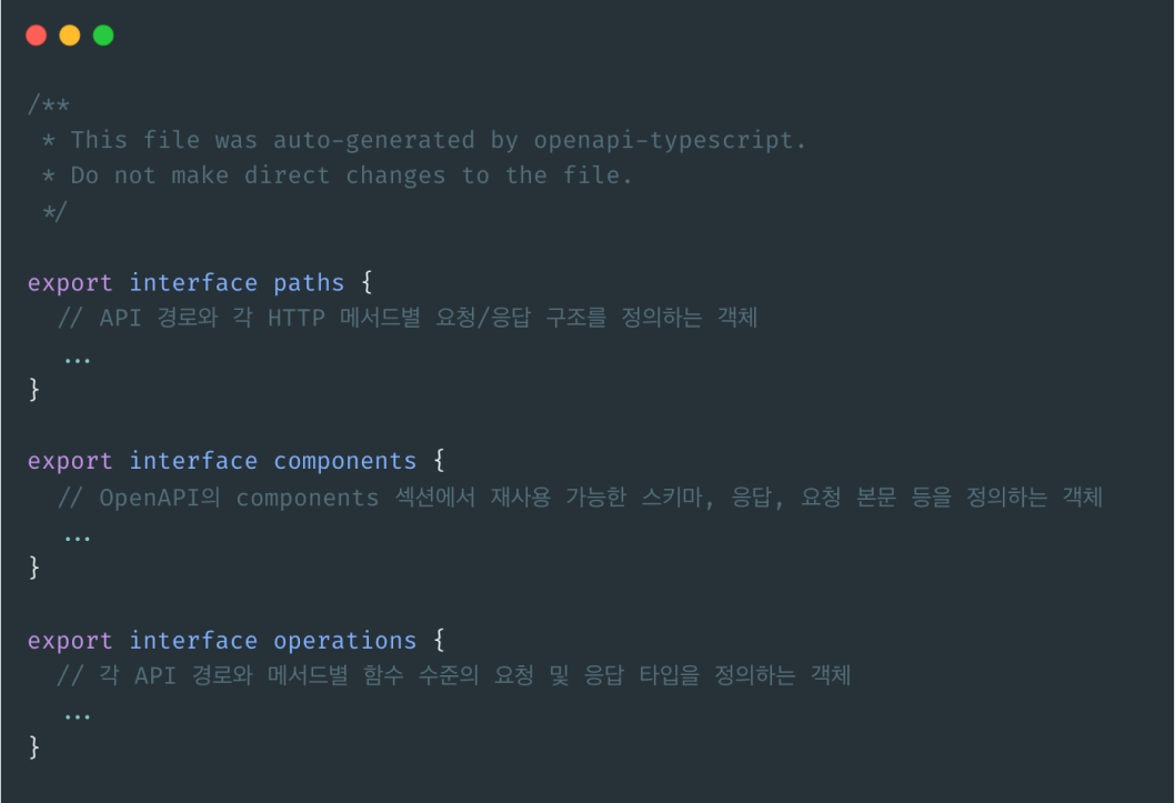 OpenAPI Specification(OAS)을 기반으로 TypeScript 타입을 생성하는 도구입니다. 이는 API 타입 정의를 자동화하여 개발 생산성을 높이고, 타입 안전성을 보장합니다.