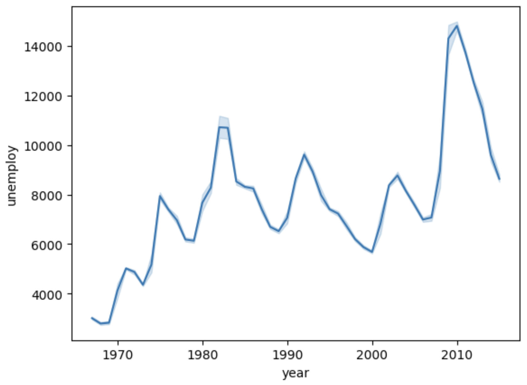 The economics dataset represents various U.S. economic indicators on a monthly basis. A time series graph was created using this data. when diplaying the years on the x-axis through the code below, confidence interbals appeared.