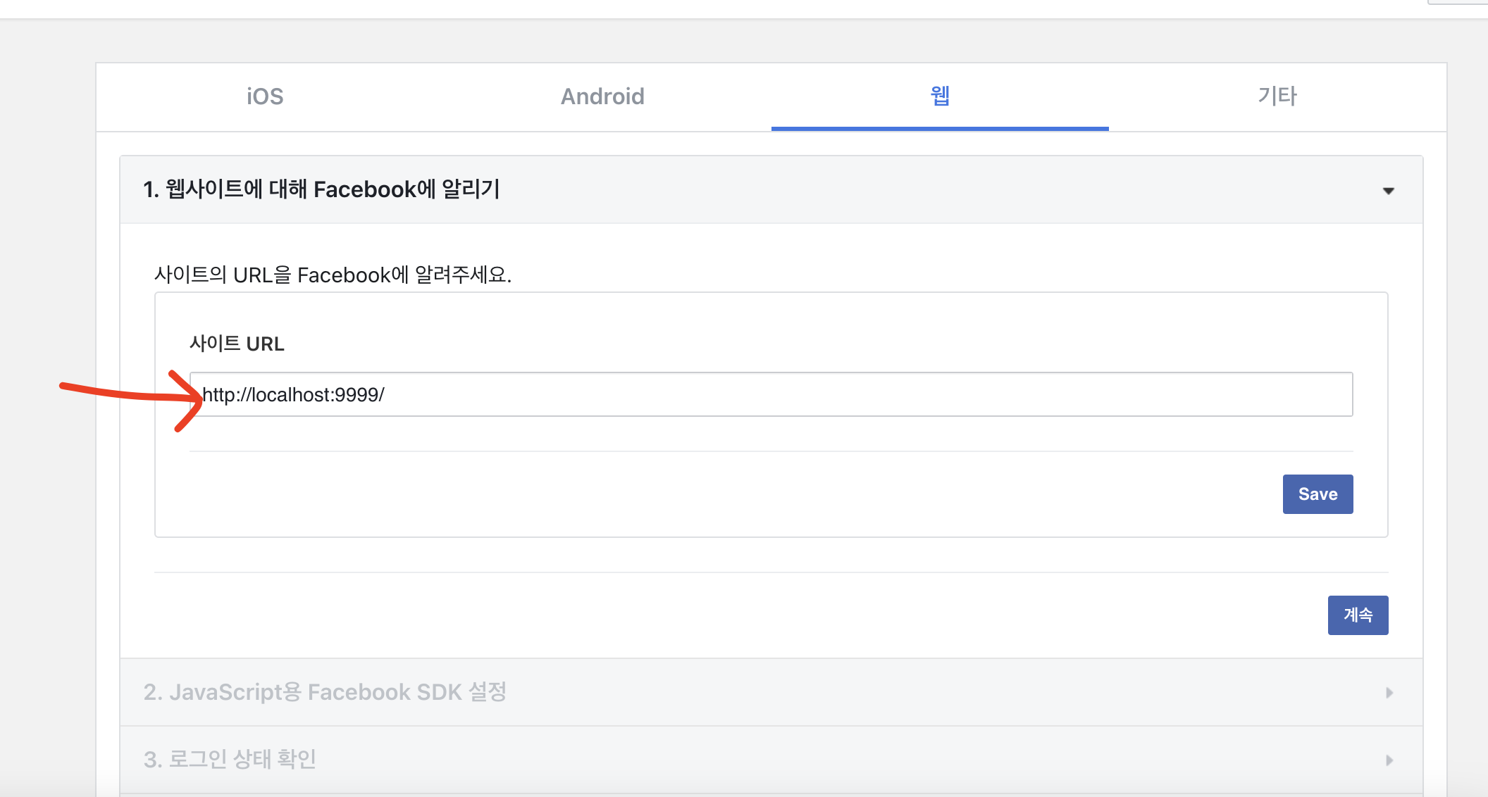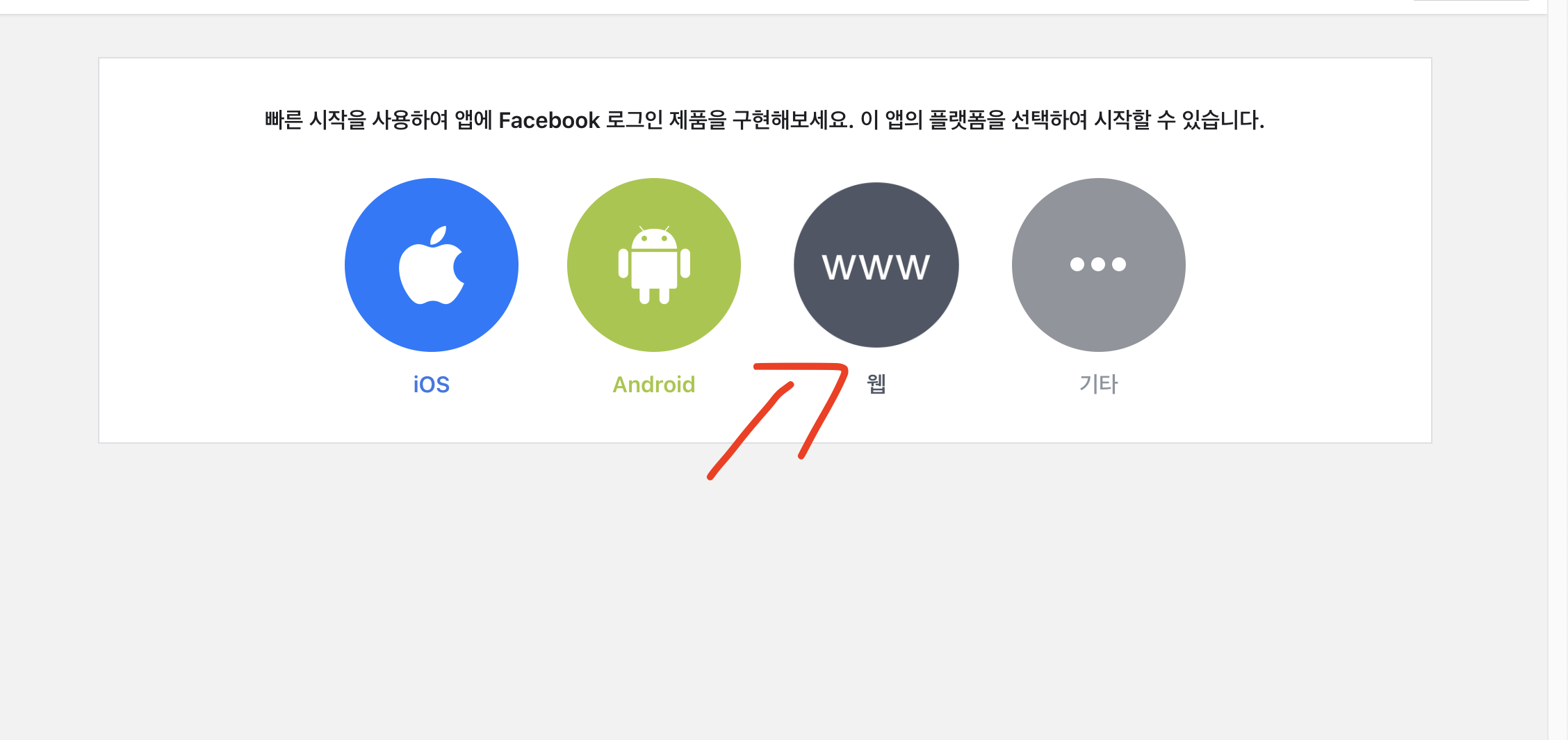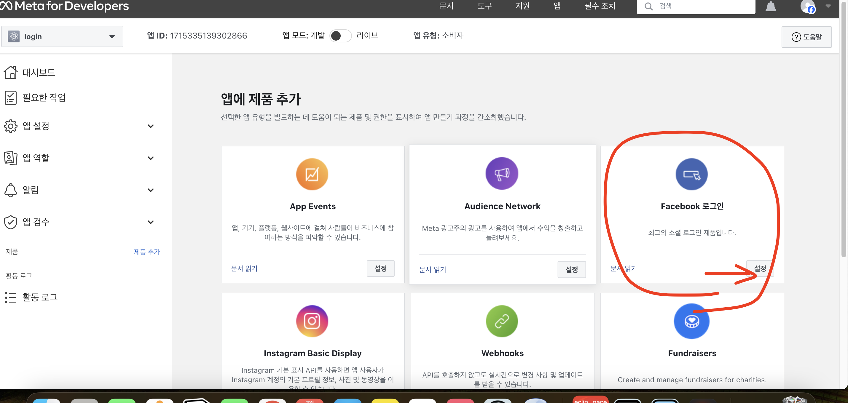 내 앱 누르면, 해당 화면이 나옵니다. facebook 로그인 클릭