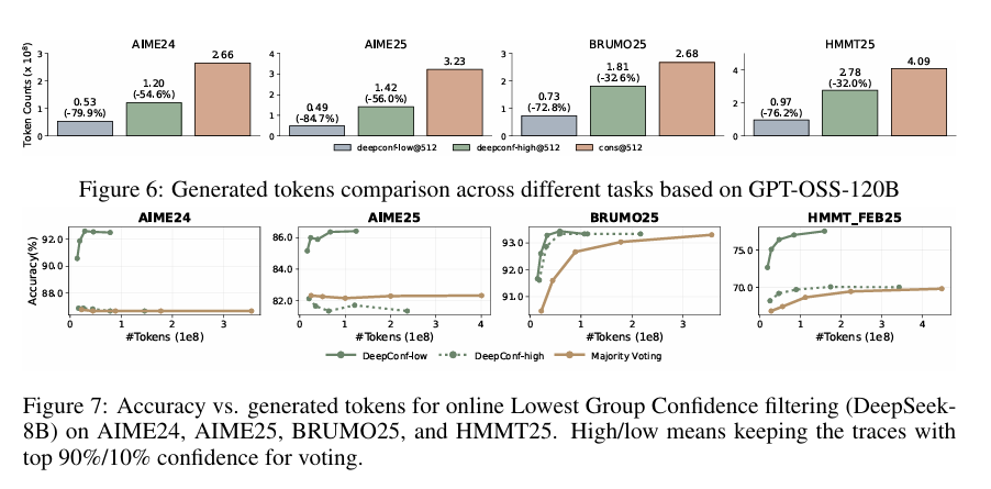 DeepConf-low: 평균 62.9% 토큰 절약