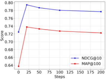 이 손실 함수는 고정된 수의 단계 동안 경사 기반 최적화기(Adam)를 사용하여 최소화되며, 인코더 파라미터는 변경되지 않는다. 최적화된 임베딩 는 최종 검색 표현으로 사용된다.