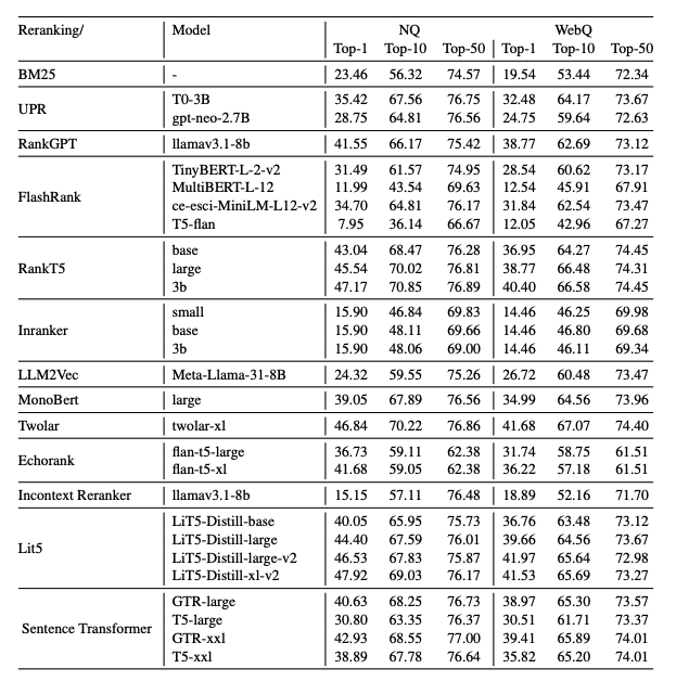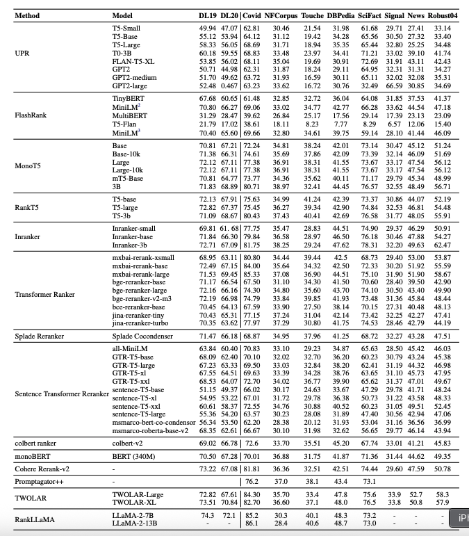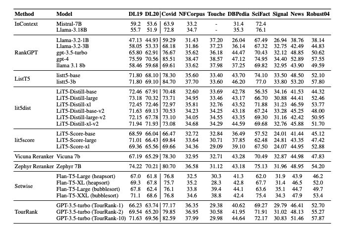 본 연구는 IR 태스크에서 사용되는 reranking 기법들을 대상으로, 대규모 언어 모델(LLM) 기반 방법, 경량(contextual) 모델, 그리고 zero-shot 접근법을 포함한 체계적이고 포괄적인 실험적 비교를 수행한다. 총 22개의 reranking 방법과, 사용된 LLM에 따라 파생된 40개의 변형을 평가 대상으로 삼았으며, TREC DL19, DL20, BEIR과 같은 기존 벤치마크뿐 아니라 사전학습 데이터에 포함되지 않은 질의를 평가하기 위해 새롭게 설계된 데이터셋을 함께 사용한다.
