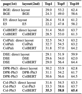 이와 같은 이중 작업 검색 설정은, 긴 멀티모달 문서 환경에서 페이지 단위의 거친 검색과 레이아웃 단위의 세밀한 검색을 동시에 수행할 수 있도록 설계되었다.