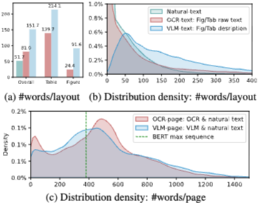 특히 기존 데이터셋 대부분에는 레이아웃 주석이 포함되어 있지 않았고, 최종적으로 4개의 데이터셋에 대해서만 레이아웃 수준 레이블을 확보할 수 있었다. 훈련 세트의 전체 통계(문서 길이, 도메인 분포, 멀티모달 구성 등)는 논문에서 별도로 정리되어 있다.