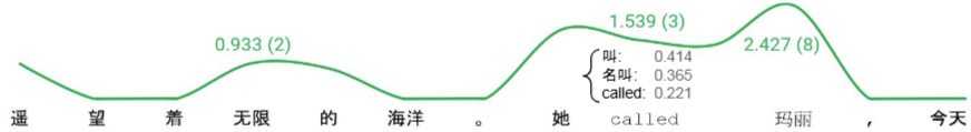 Okapi의 중국어 프롬프트 15개에 대해 Command R로 응답을 생성한다. 15개 중 5개에서 영어 혼입이 관찰된다. 최초로 영어 token이 끼어든 위치를 confusion point (CP) 라 부른다. 총 9개의 CP가 확인된다.