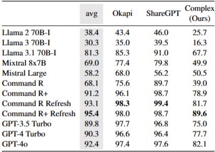 언어 혼동 테스트셋은 다양한 사용 사례와 도메인을 포괄하도록 구성한다. 단일언어에서는 데이터셋 간 LPR 차이가 작다. 교차언어에서는 차이가 더 뚜렷하다. Okapi와 ShareGPT에서는 비교적 성능이 양호하지만, 자체 수집한 Complex 프롬프트에서는 성능이 크게 낮아지며 난도가 높음을 시사한다. WPR과 LCPR도 유사한 경향을 보인다.