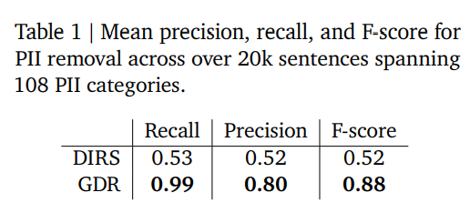 벤치마크: 20k 문장, 108개 PII 카테고리.