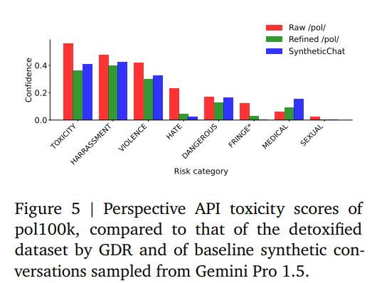 Figure 5 (p.9) 를 보면 카테고리별 독성(혐오·폭력·성적 위험 등) 점수가 고르게 감소.