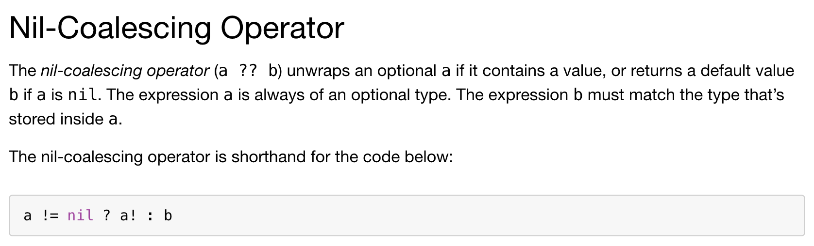 The nil-coalescing operator is shorthand for the code below:
