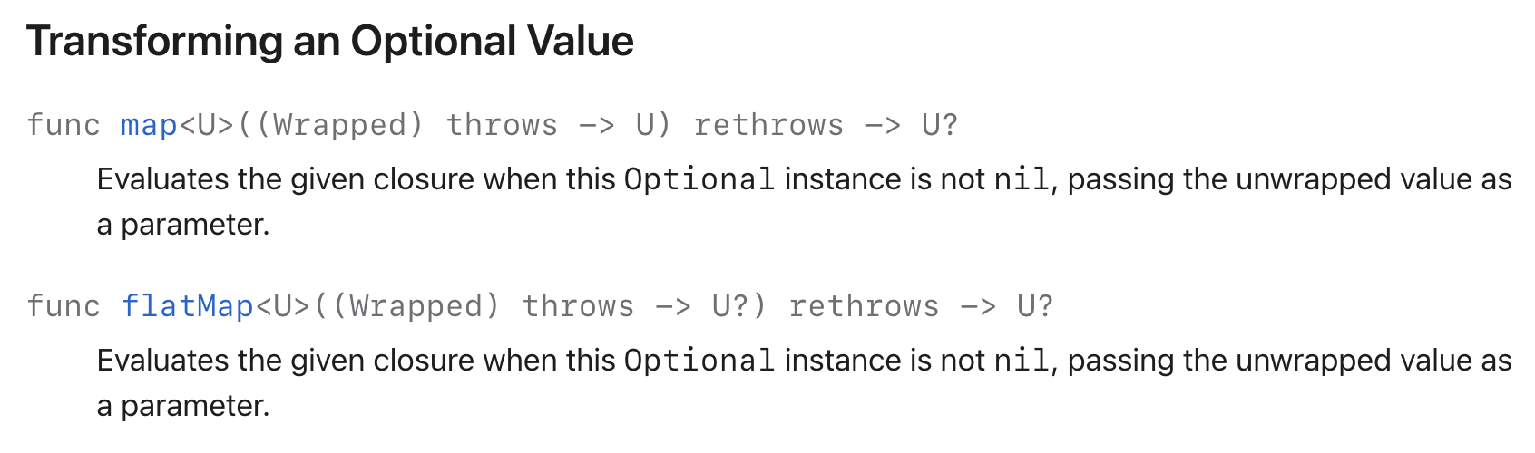다른 말로 하면 값이 있다면 전달된 클로저를 통해 값을 바꿔서 반환한다고 이해할 수 있겠다.