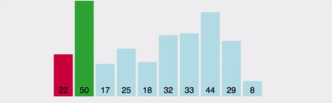 - 전체 리스트에서 가장 작은 요소를 찾아 첫 번째 자리로 옮기고, 그 다음 작은 요소를 찾아 두 번째 자리로 옮기는 정렬 방식이다.