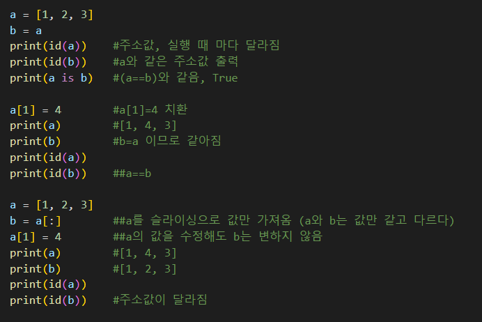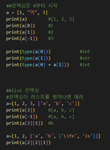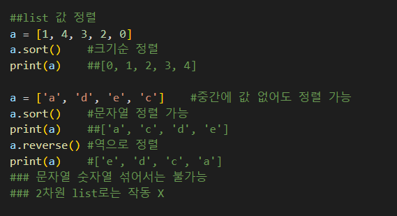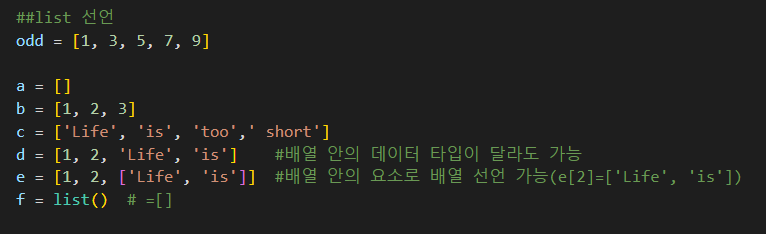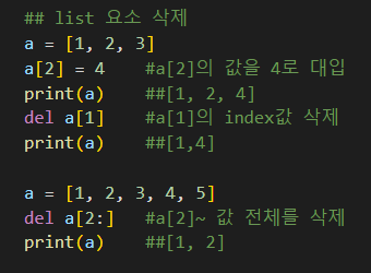 리스트: 요소 값을 바꿀수 있다, 요소를 [ ]로 둘러싼다