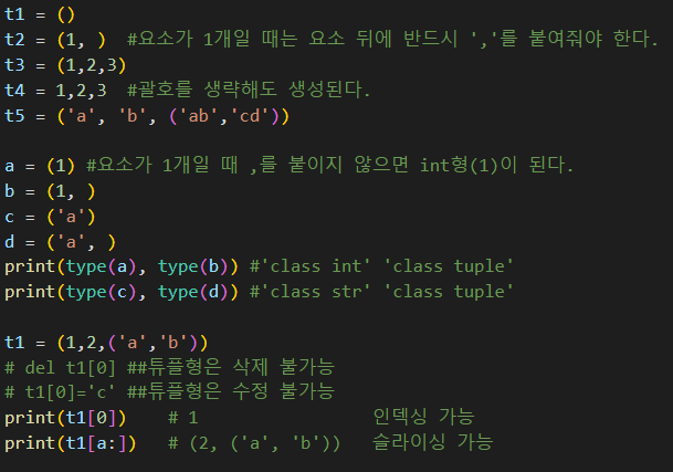 튜플의 기본 형태: 요소를 ( )로 둘러 싼다